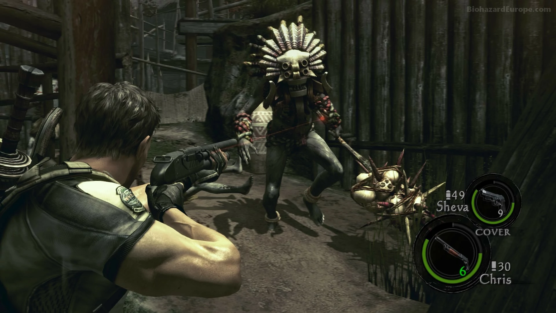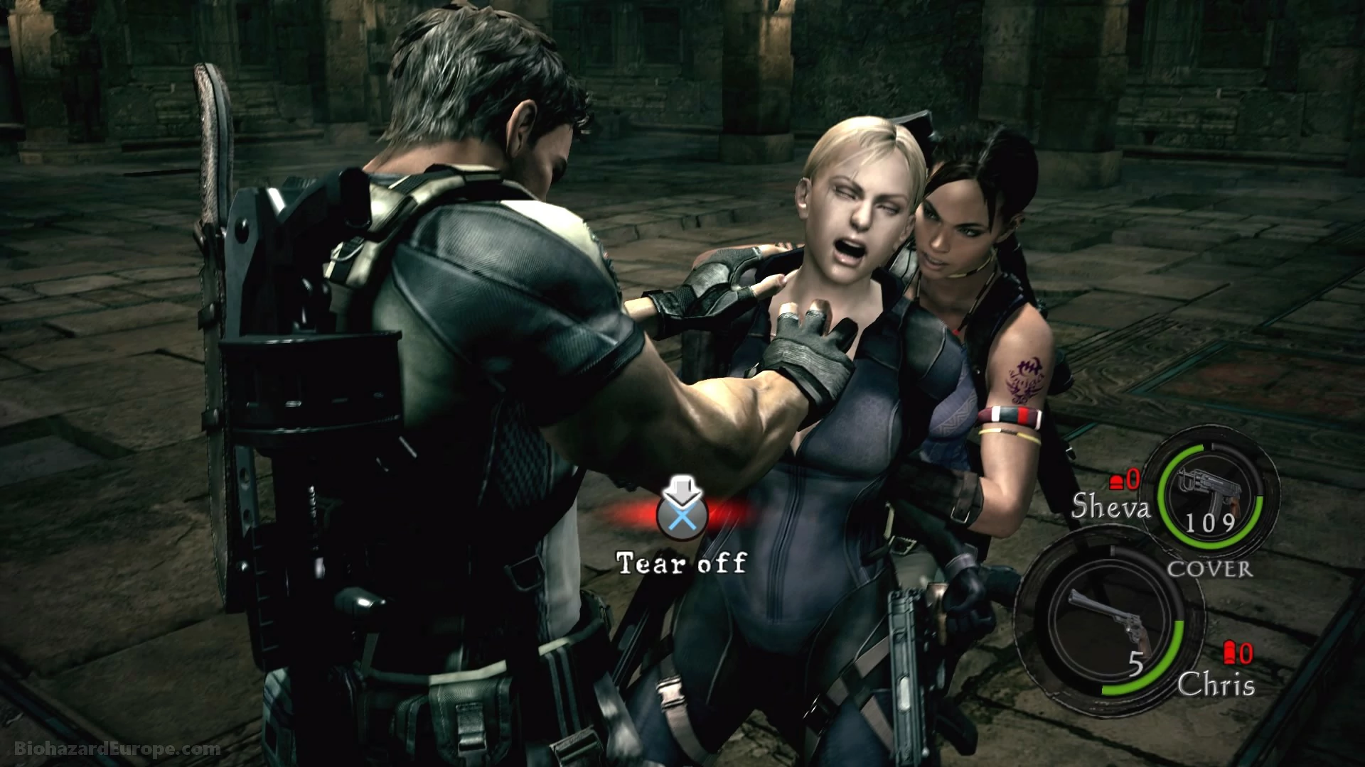jak zde Chris přišel o svojí parťačku Jill Valentineovou. Afrikou ho tedy již neprovází Jill, ale nová parťačka Sheva Alomarová